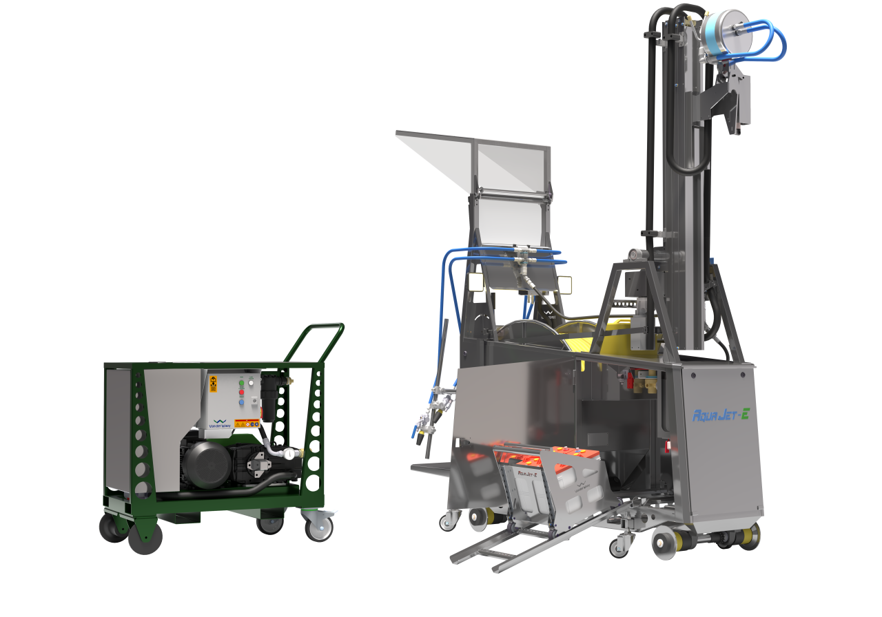 Since these are not in use when the AquaJet E is in use, the batteries from the pipe rail trolleys can be used temporarily in the AquaJet E. This is good for the environment, and you can also save considerably on the investment.