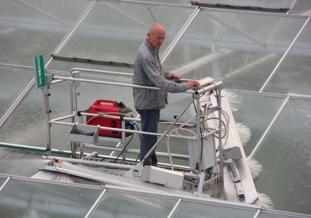 Joost van der Waay was the first to develop an automatic greenhouse roof washing machine for Venlo greenhouses.