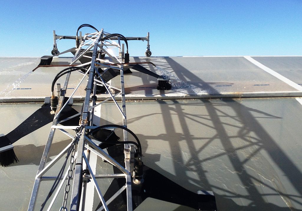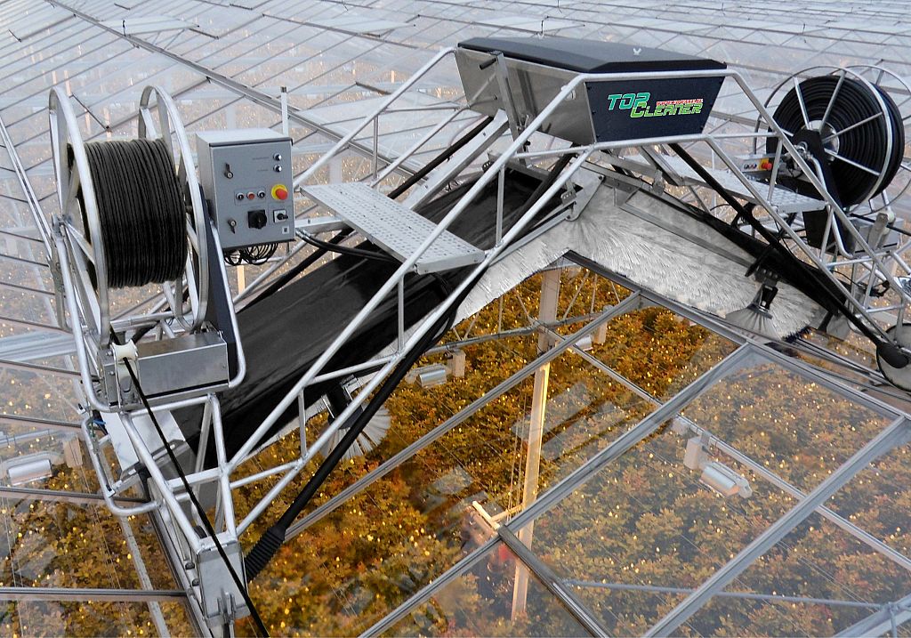Van der Waay, on behalf of Poot Greenhouse Deck Cleaning, is developing a new model of Top Cleaner, the Model V. This machine fits on the various Venlo axles and can be used with the vents open.