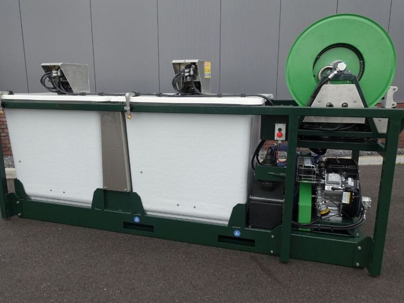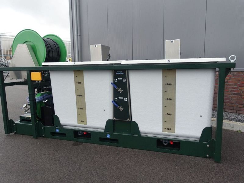 The polyester mixing buckets each have a capacity of 1,000 liters and are fitted with a graduated scale and have large hinged lids that make filling and cleaning the buckets very easy.